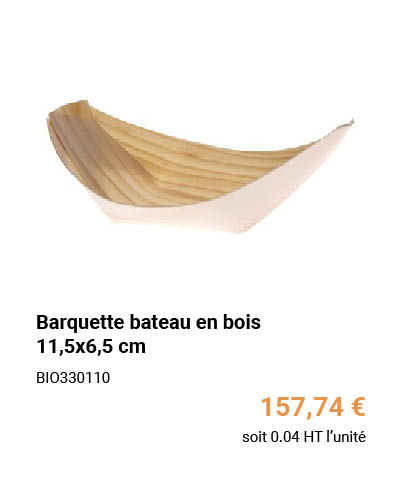 - Street food & vente à emporter : Pour la restauration nomade, les barquettes en bois, les couverts en bois ou les piques et accessoires sont des incontournables. Robustes et pratiques, ils permettent un service rapide et hygiénique tout en évitant le plastique. Leur design épuré et leur résistance à la chaleur garantissent une expérience de dégustation agréable, que ce soit pour un burger, des tapas ou un plat à emporter. L’emballage bois véhicule une image naturelle et responsable, en parfaite adéquation avec les tendances de consommation actuelles.